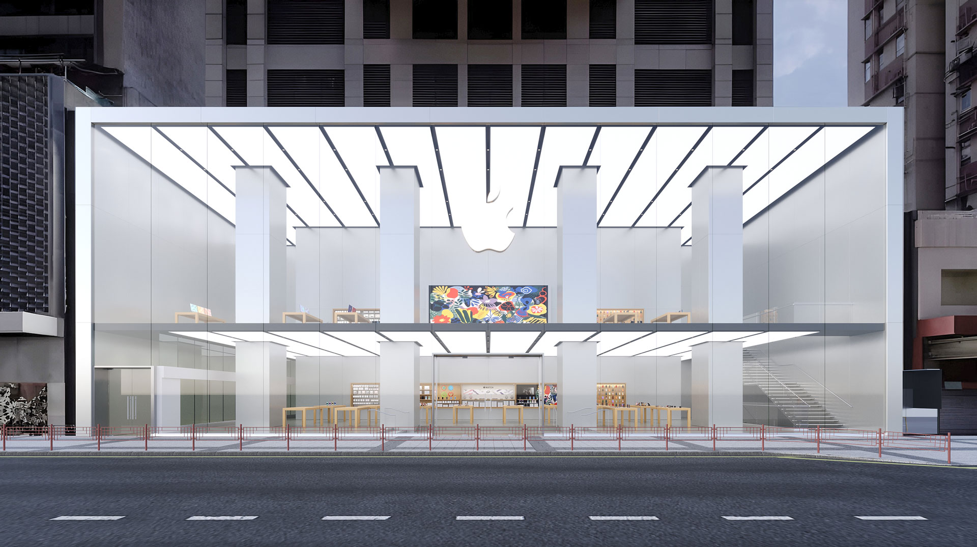 For the Apple Store Hong Kong concept, we undertook a self-initiated visualisation study to benchmark our capabilities against one of the world’s most refined retail environments—Apple Inc..
